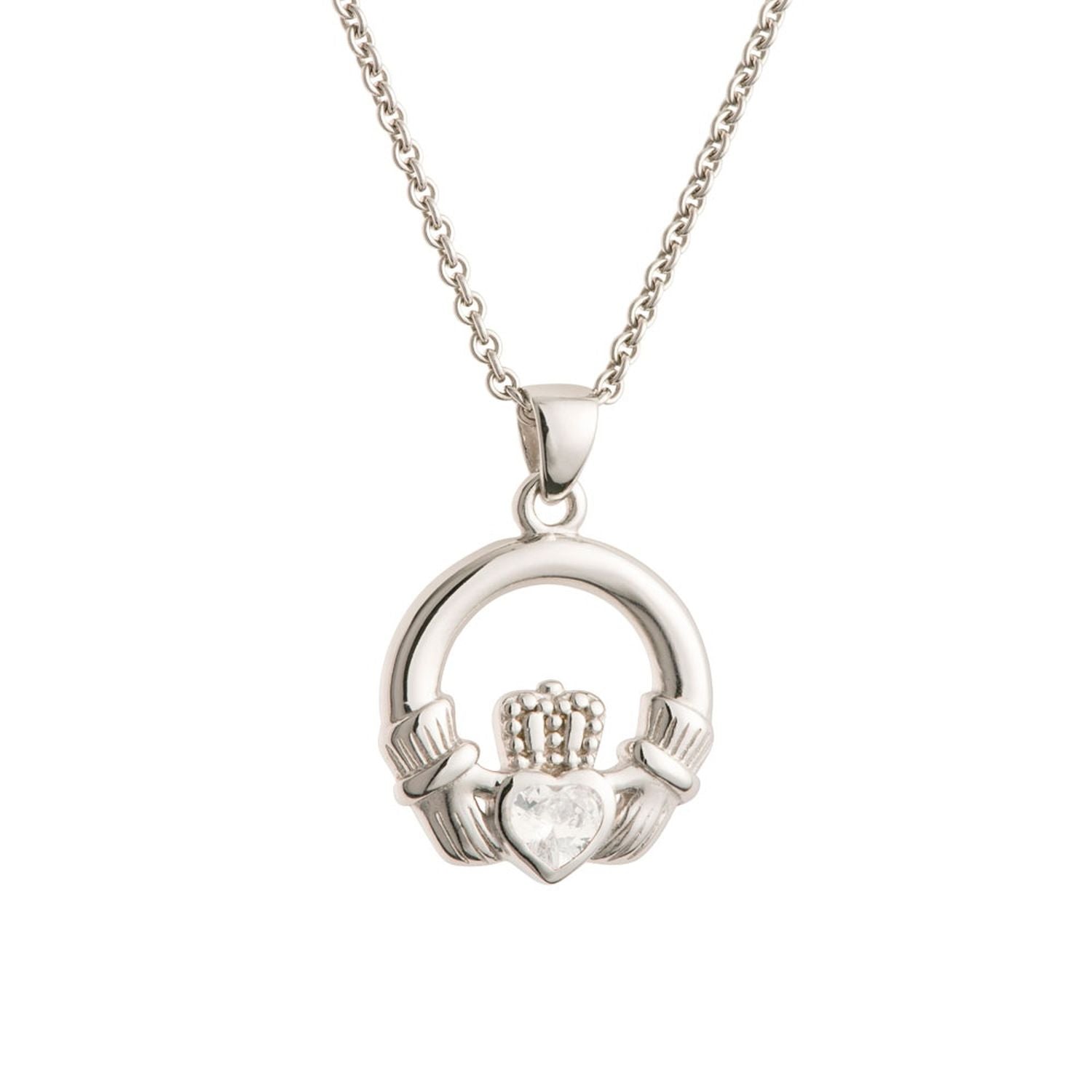 Galway Crystal Claddagh Pendant, 2.67 Gms - Rhodium Plated 925 Sterling Silver