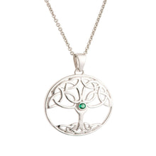 Galway Tree Of Life Green Crystal Silver Pendant 3.2 Gms - Rhodium Plated