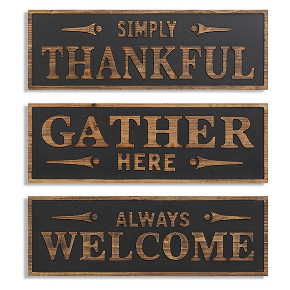 Gerson 23.43"L Wood Engraved Harvest Wall Sign, 3 Assorted